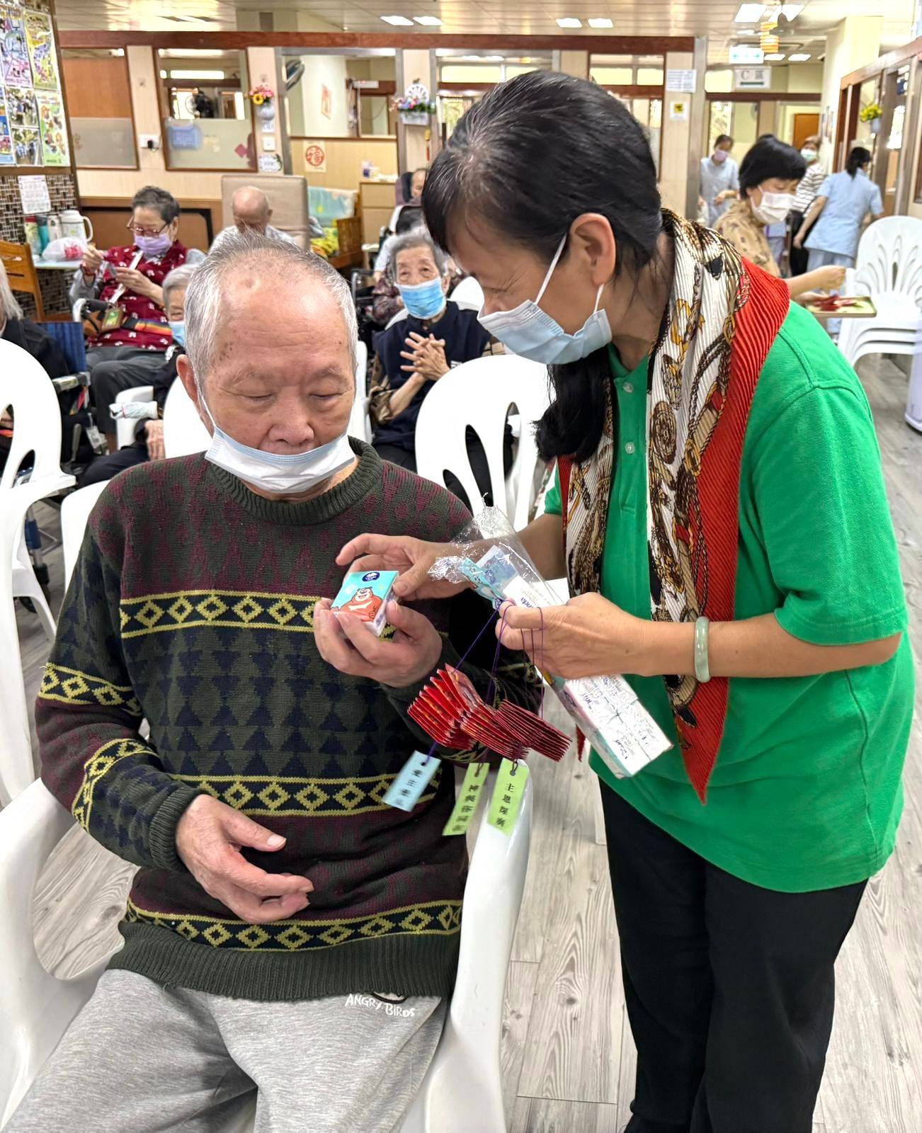 耆福會為一基督教團體,每月定期到本院進行手工活動,包括剪貼工藝及制作節日小掛飾.