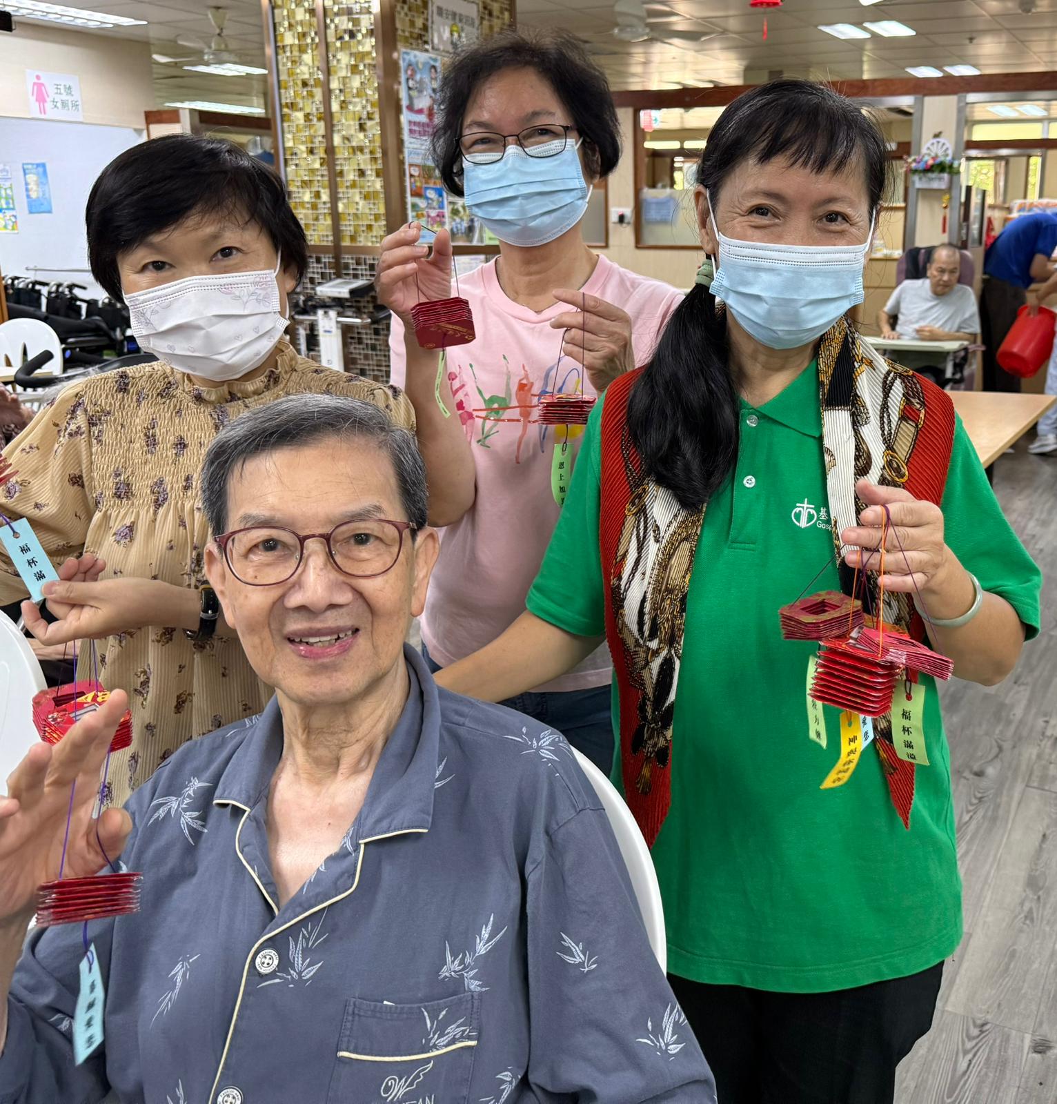 耆福會為一基督教團體,每月定期到本院進行手工活動,包括剪貼不同工藝及制作節日小掛飾.