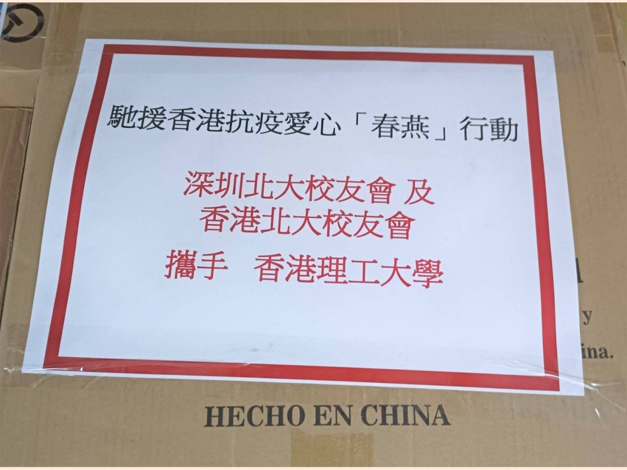 馳援香港抗疫愛心"春燕"行動: 贈送2箱口罩