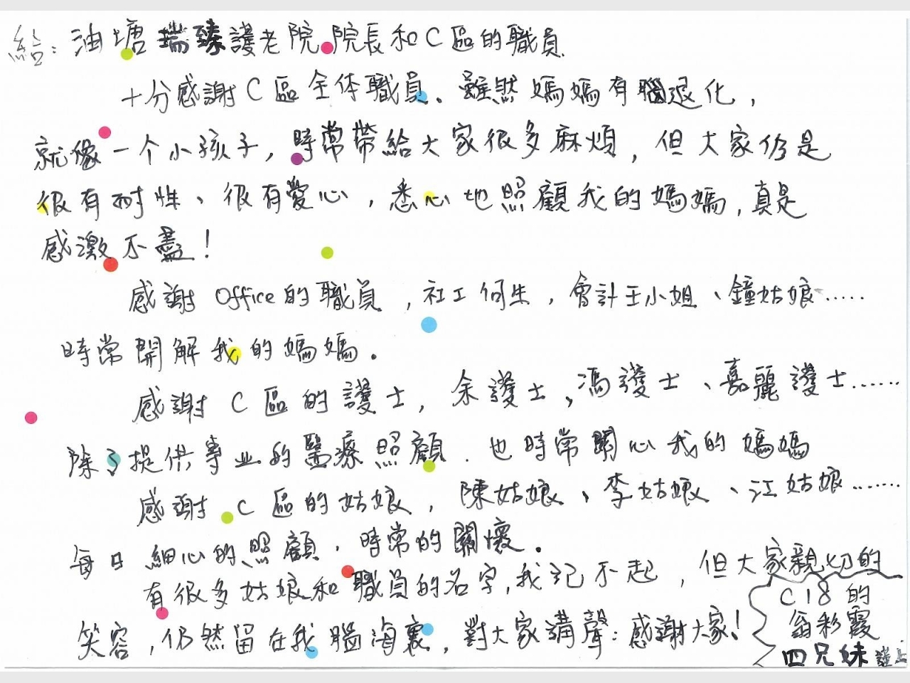 翁彩霞家人感謝CARD