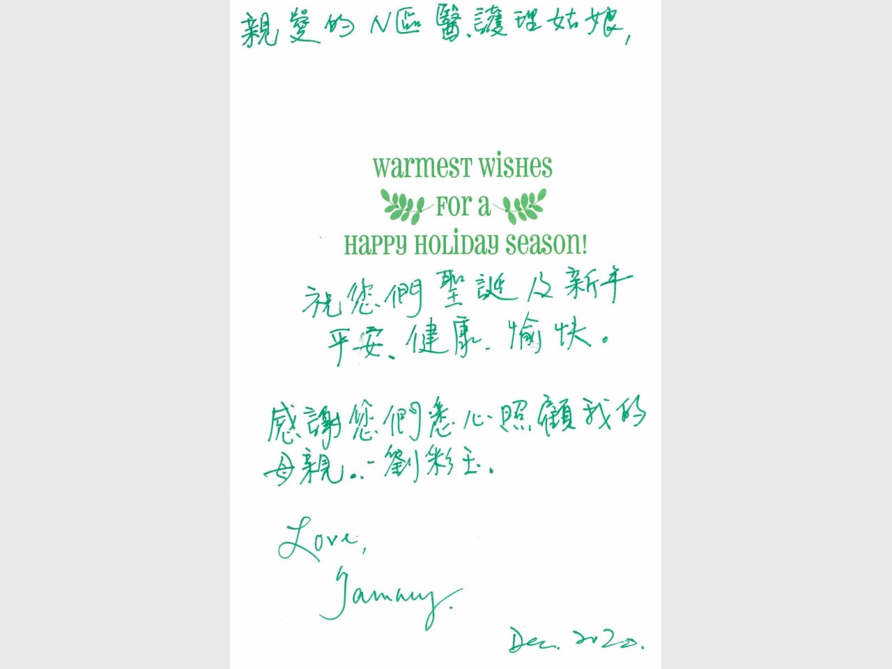 劉彩玉家人感謝信