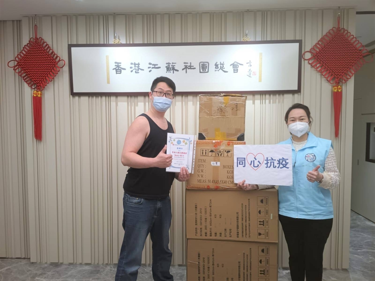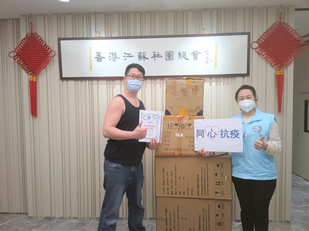香港江蘇社團總會Danny-HKJS: 贈送2000個N95口罩和3000個一次性醫用口罩.